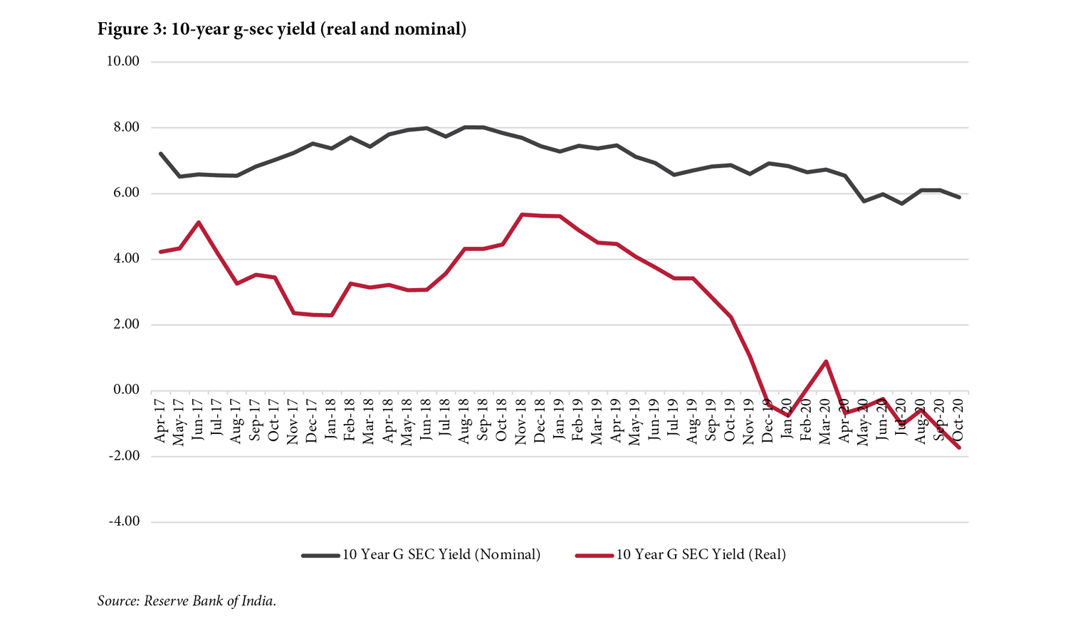 [9] A similar episode of negative real rates took place in the early 2010s after the NAFC, consequent to an extended highly accommodative monetary policy stance. There was some evidence of flight to safety of household assets like gold (Mohan and Ray, 2019).