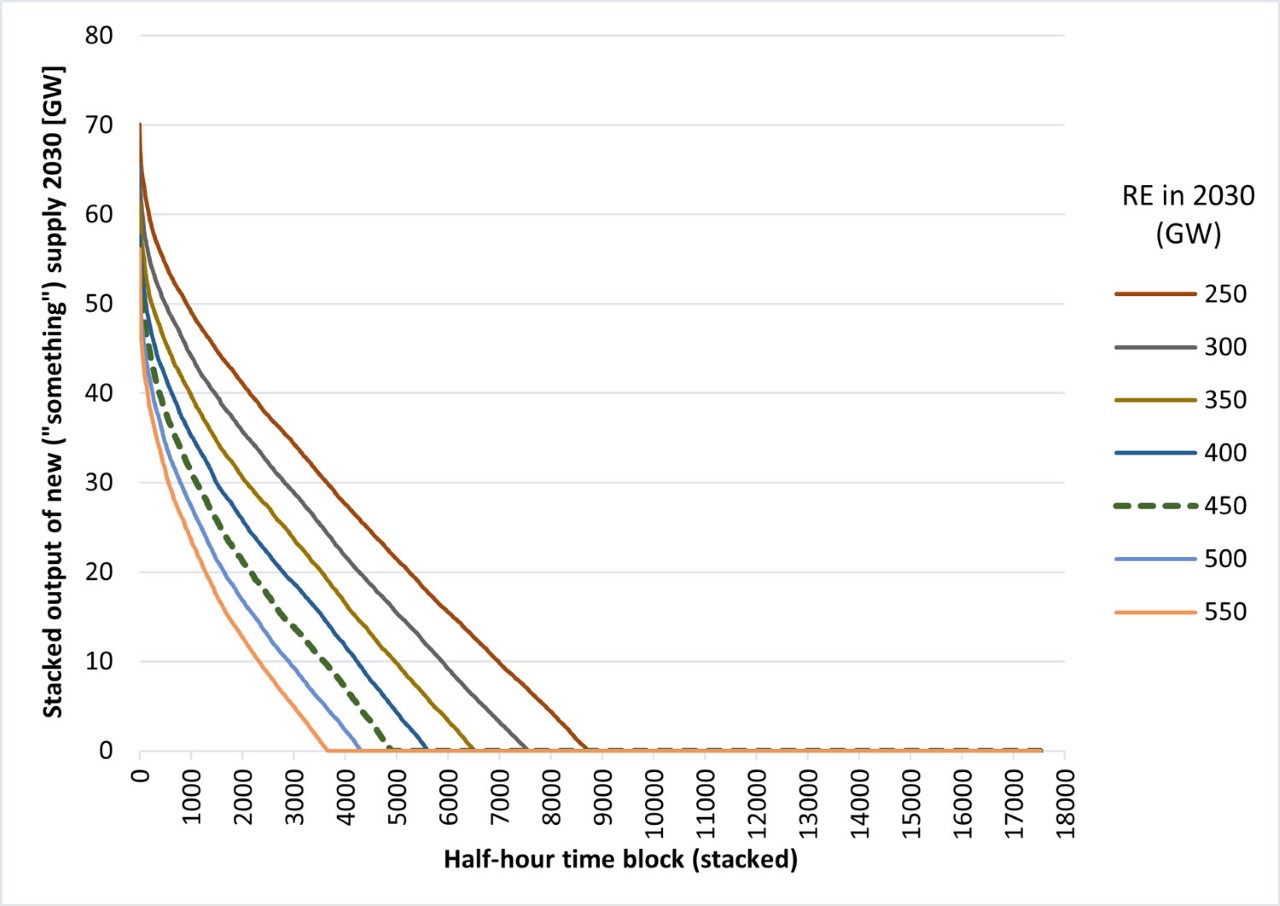 Figure 2: Load Duration Curve for NEW Supply required (half hourly stacked time periods, i.e., not chronological) in 2030
