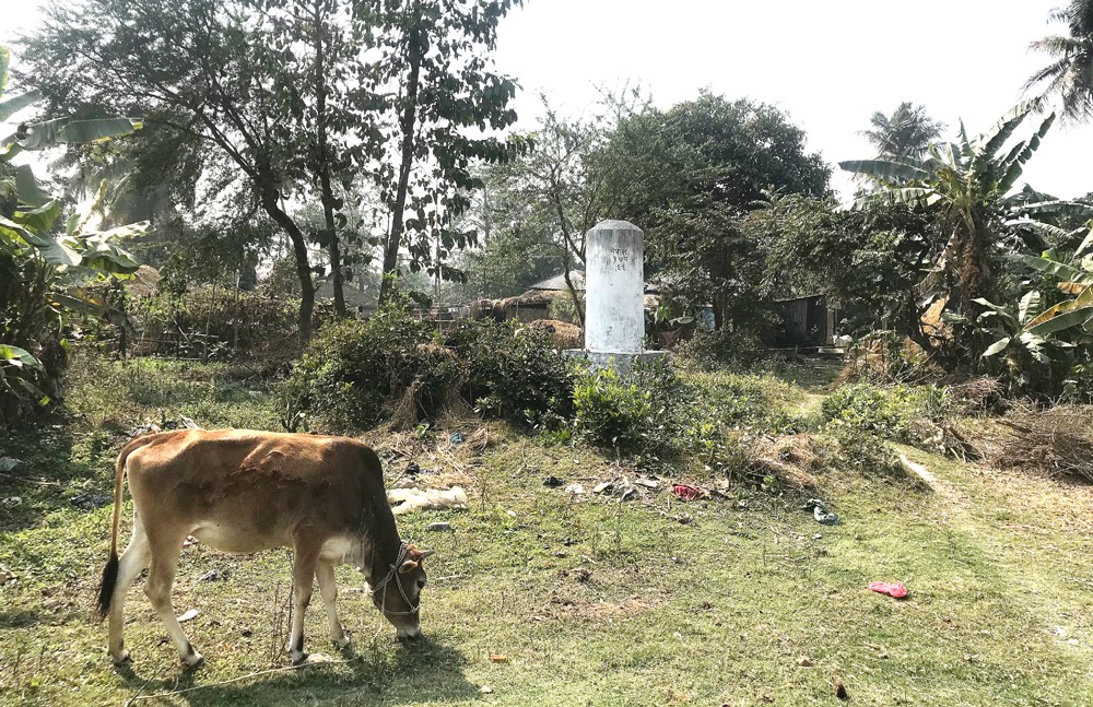 A border pillar separating Indian and Nepali territory in Biratnagar. Many villagers move freely across this border pillar for everyday activities.