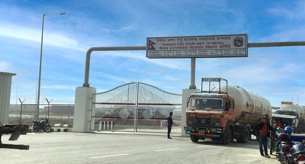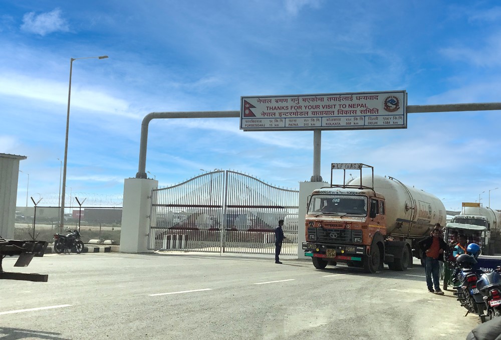 The trade gate of the Jogbani-Biratnagar Integrated Check Post. Petroleum is the major commodity imported by Nepal from here.