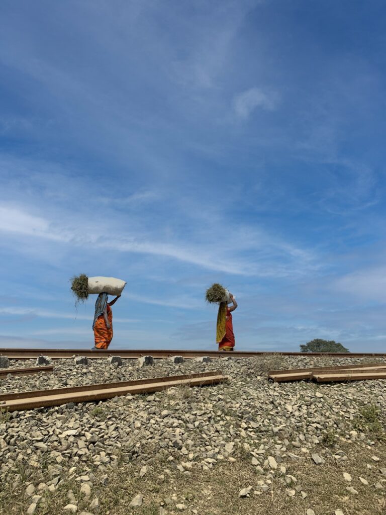 Local villagers use the railway track for moving across the border for agricultural activities.