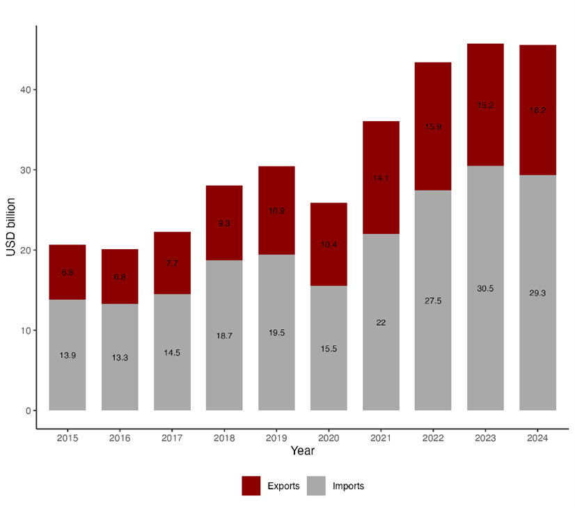 Figure 2: Trade Volume of Green Goods (GGs) in India, 2015–2024 (in USD Billion)