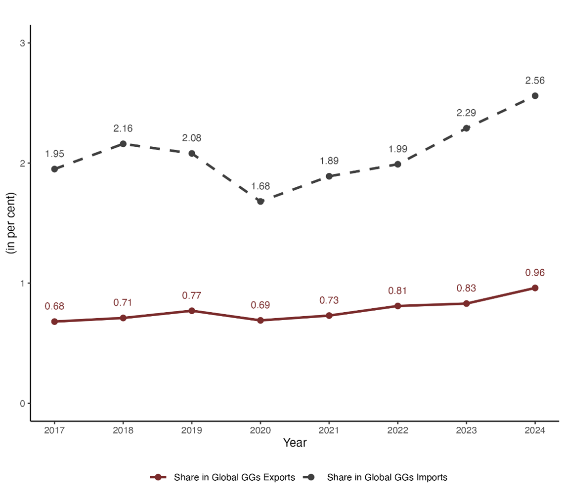 Figure 4: India’s Share of Global Trade in Green Goods (2017-2024) (in per cent)