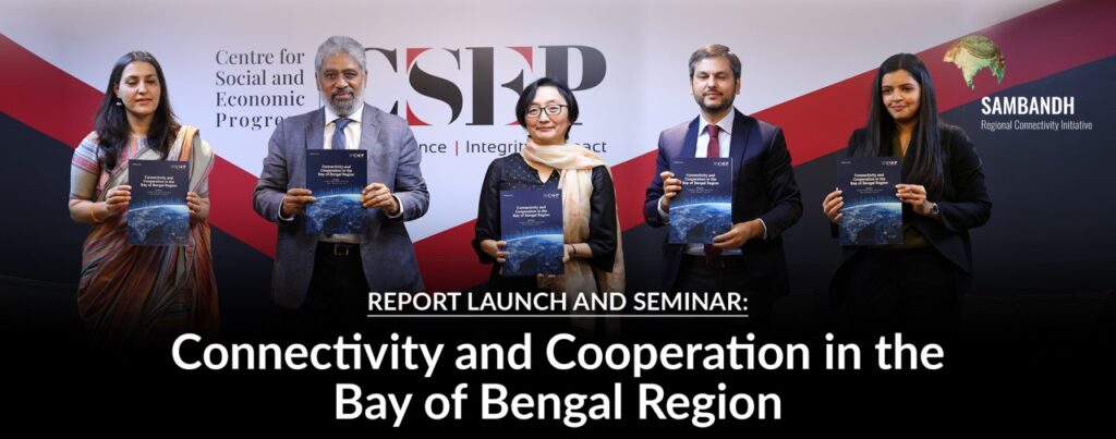 - The Centre for Social and Economic Progress (CSEP) hosted a hybrid seminar on Connectivity and Cooperation in the Bay of Bengal Region to mark the launch of a new report co-edited by Constantino Xavier and Amitendu Palit.