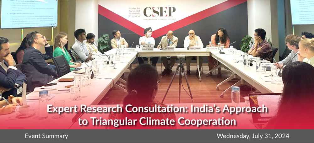 - CSEP hosted an Expert Research Consultation on ‘India’s Approach to Triangular Climate Cooperation’ with Pooja Ramamurthi, Associate Fellow, CSEP.