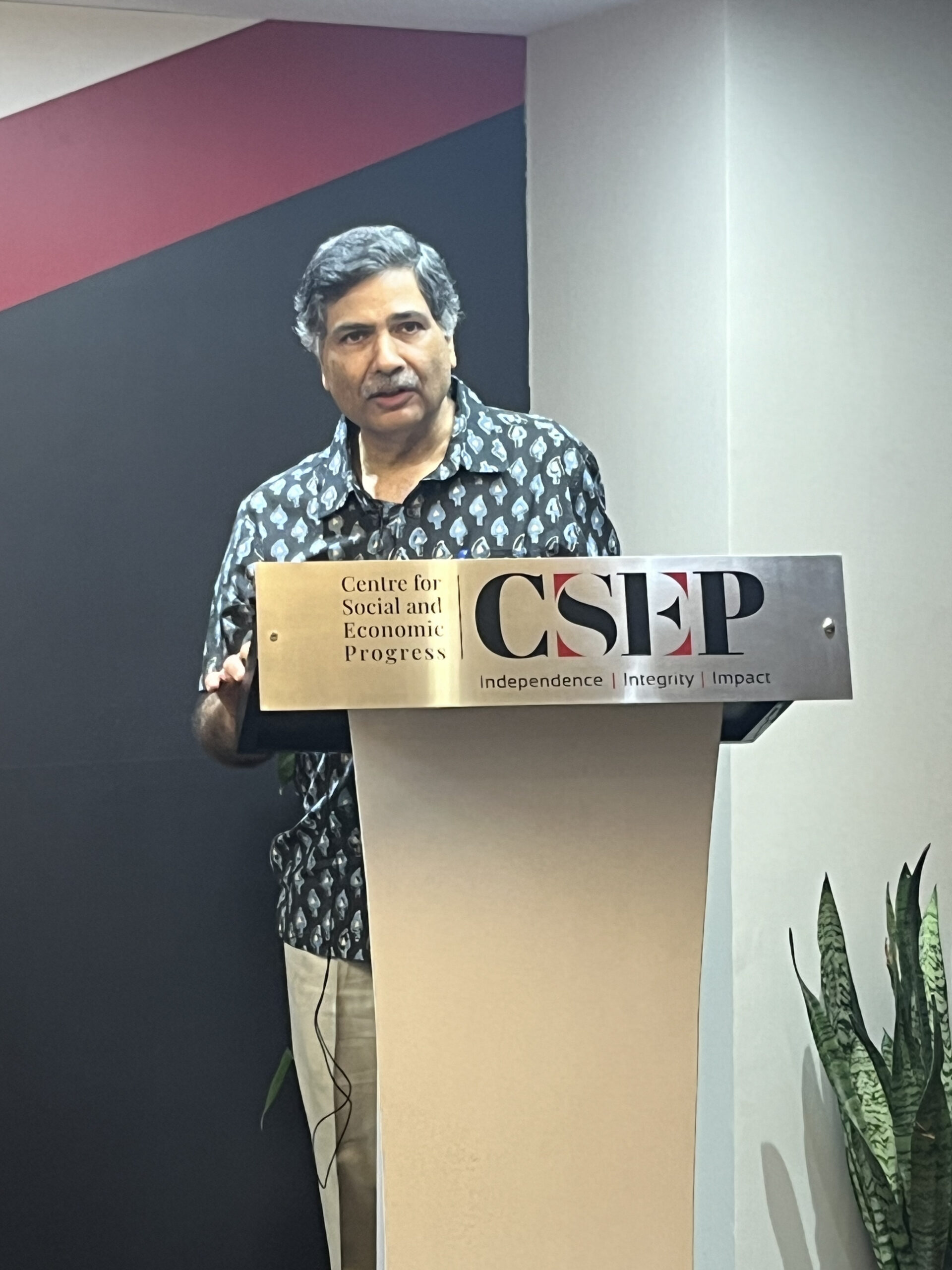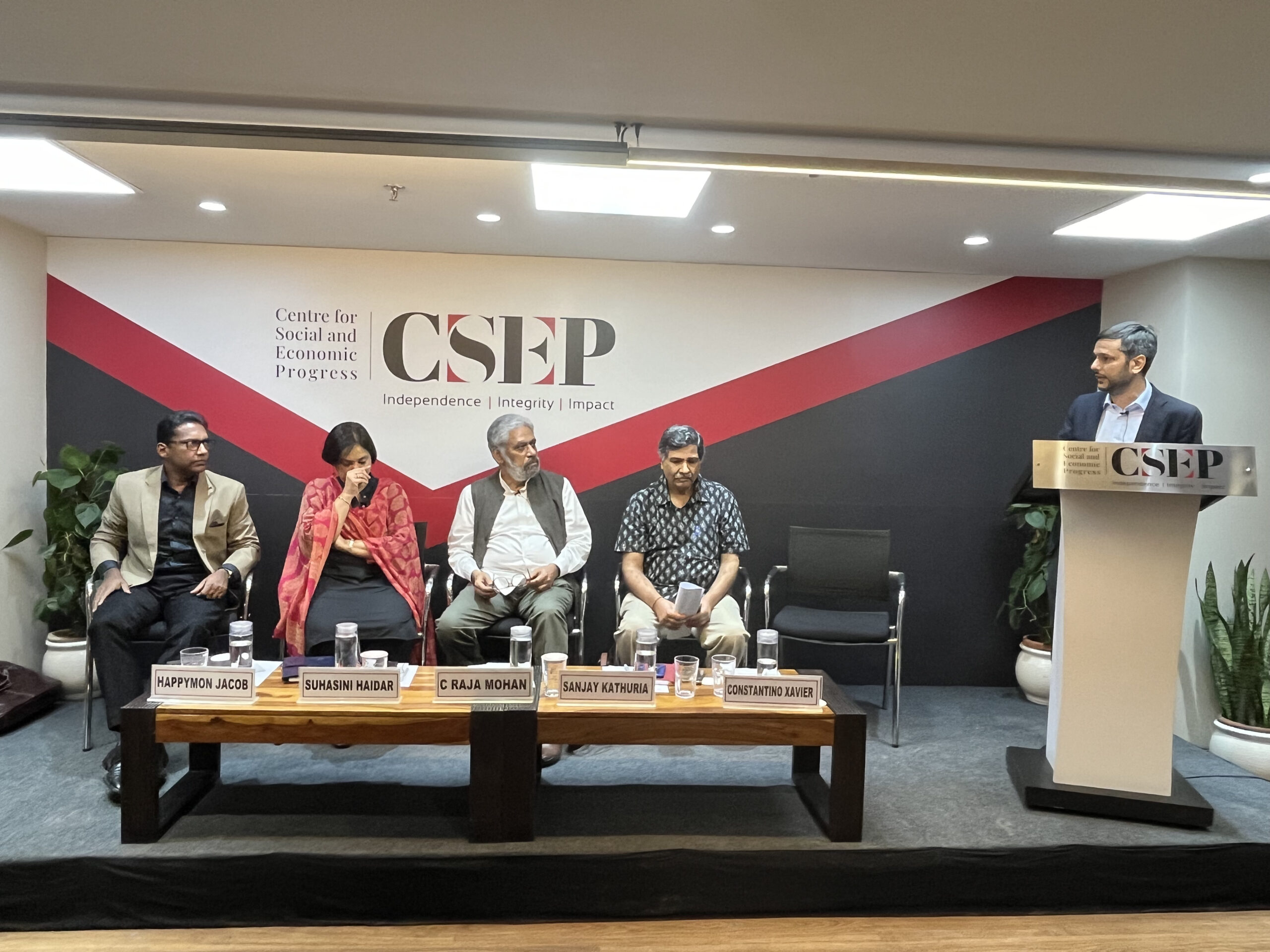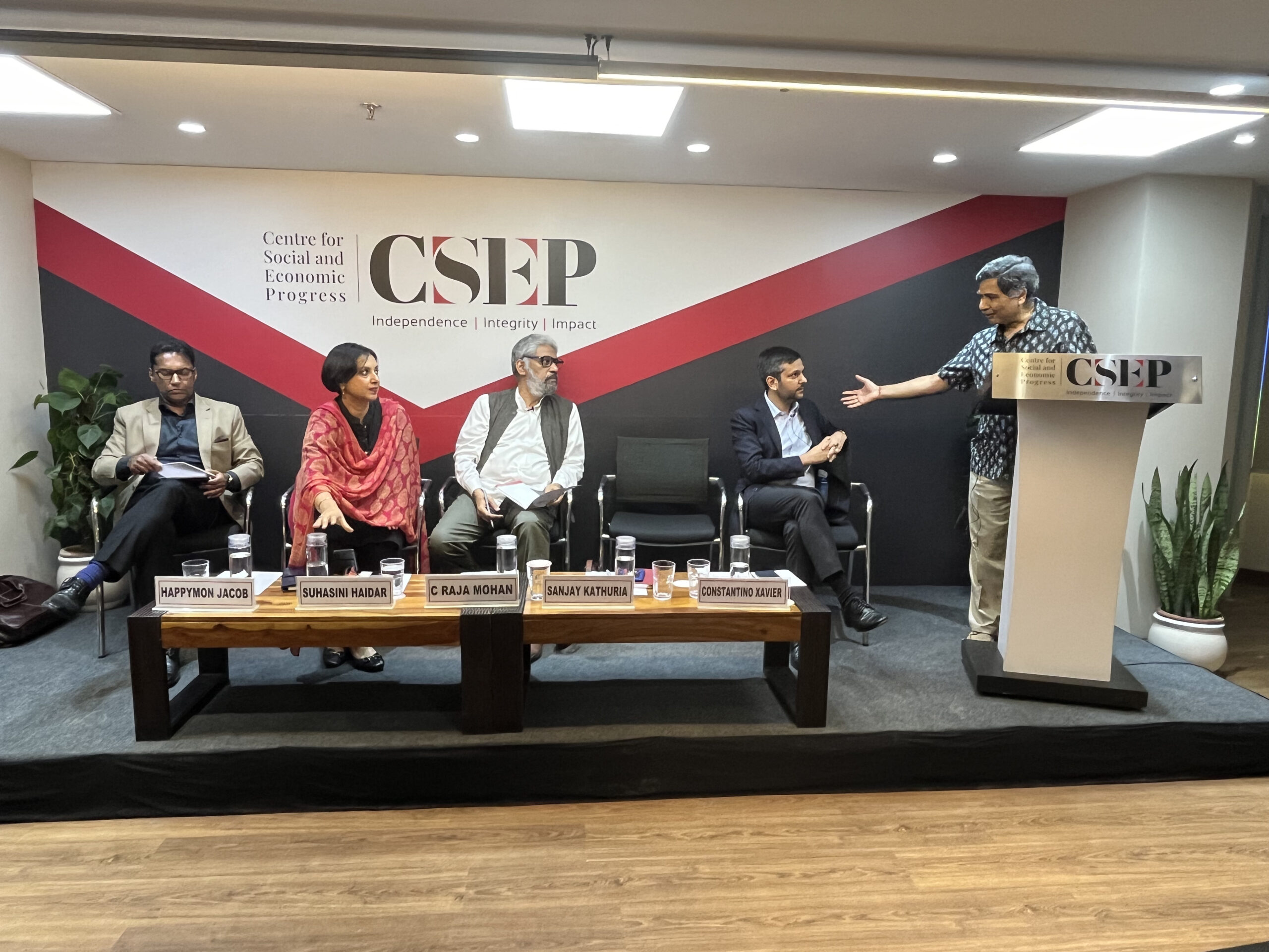 The Centre for Social and Economic Progress hosted a seminar titled “The Missing Economic Logic in India’s Relations with Pakistan” on Monday, August 12. Sanjay Kathuria, Visiting Senior Fellow, CSEP made a presentation based on his recent paper titled ‘Toward a Durable India-Pakistan Peace: A Roadmap through Trade’. The presentation was followed by a discussion with C Raja Mohan, Non-Resident Distinguished Fellow with the Asia Society Policy Institute, Happymon Jacob, Associate Professor of Diplomacy and Disarmament at the School of International Studies, Jawaharlal Nehru University (JNU), and Suhasini Haidar, Diplomatic Editor, The Hindu. Constantino Xavier, Senior Fellow, CSEP, moderated the seminar.