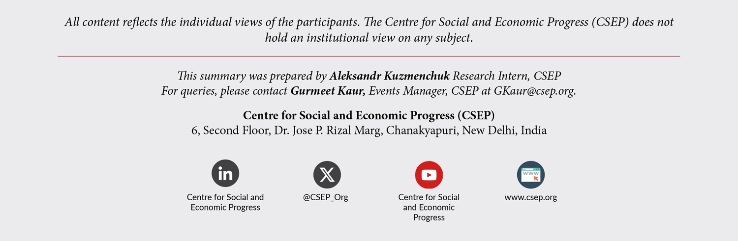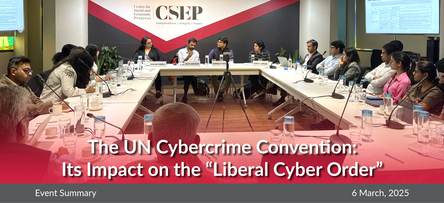 • CSEP hosted its 31st Foreign Policy and Security Studies Tiffin Talk on The UN Cybercrime Convention: Its Impact on the “Liberal Cyber Order” with Arun Sukumar and Arindrajit Basu. Dr Sukumar is an Assistant Professor of International Relations at Ashoka University and Mr Basu is a PhD candidate in the Faculty of Governance and Global Affairs at Leiden University, The Netherlands.