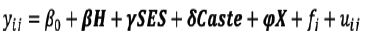 Literature in social sciences has demonstrated a continued interest in SES, especially in demography- related studies. However, there has not been any conclusive evidence on what it definitively represents (Bradley and Corwyn, 2002). It is  considered to include a comprehensive list of demographic and economic variables, including but not limited to, caste, religion, occupation, education, income, family size and household composition, parental involvement and education, ownership of a set of assets, and access to facilities or services; some studies also extend the scope of the definition to include parameters like neighborhood and school influences. Further, globally, SES is found to have strong links to developmental outcomes such as health, education and cognitive outcomes. In this research, we refer to SES as a combined measure to represent demographic, economic and social status for a household. The variables considered are discussed in the following sections of this paper.