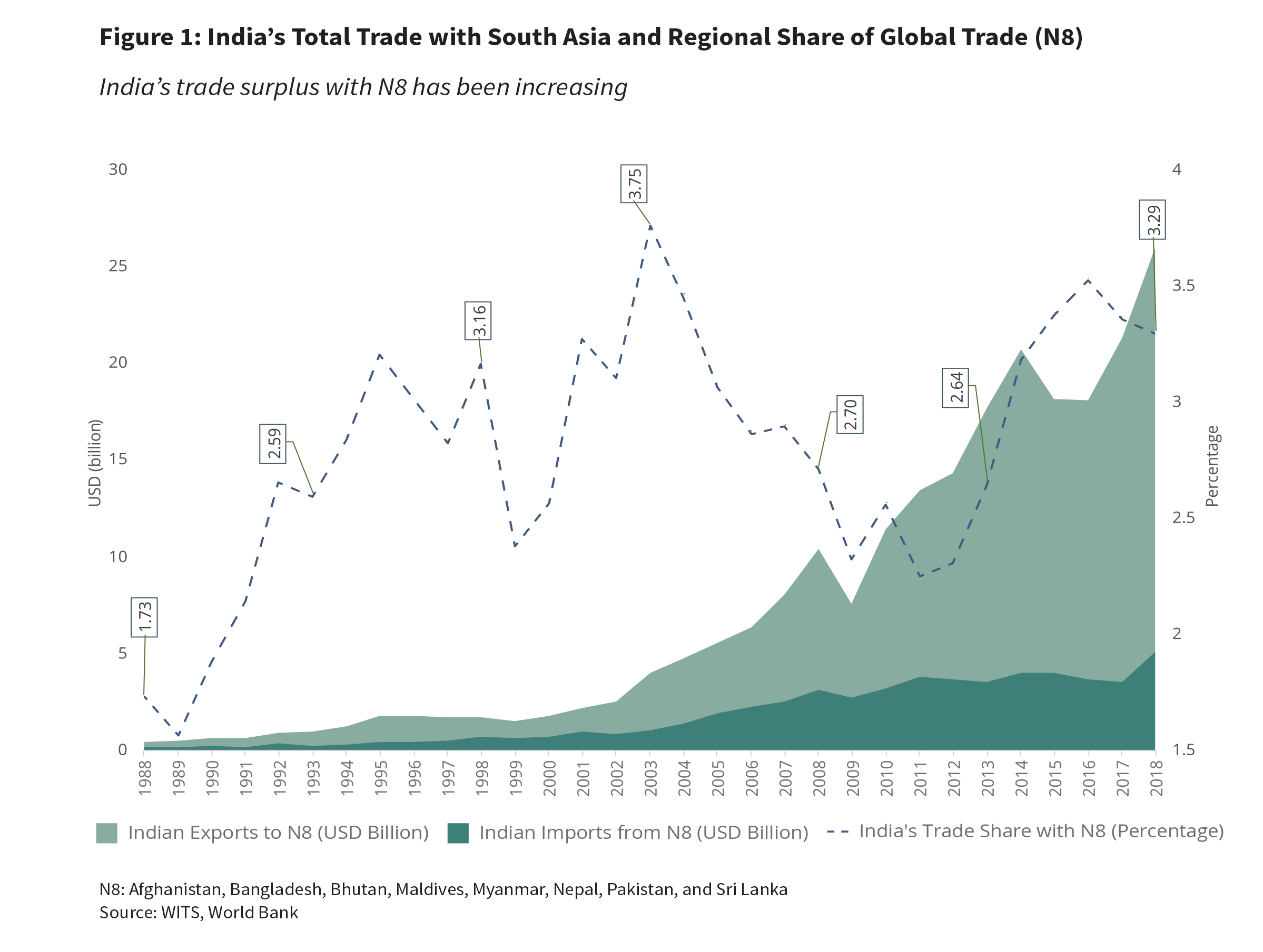India’s trade with its neighbourhood has ranged between 1.7% and 3.8% of its global trade.
