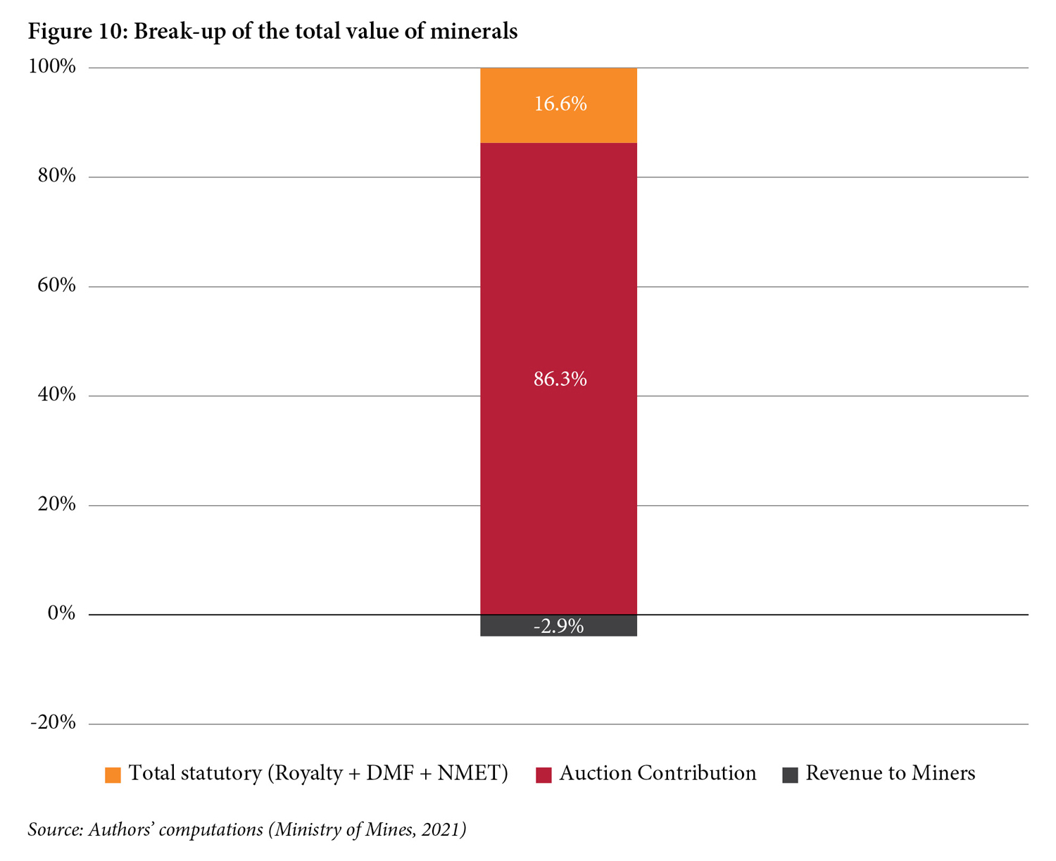 Over and above the payment of operational expenses, auction commitments, and statutory payments, miners also need to pay corporate taxes, forest and wildlife protection payments, and stamp duties. All these costs may make the business model unsustainable, leading to dampened production, corners being cut (e.g., health and safety, environment, and community welfare) or a forfeit of the lease.